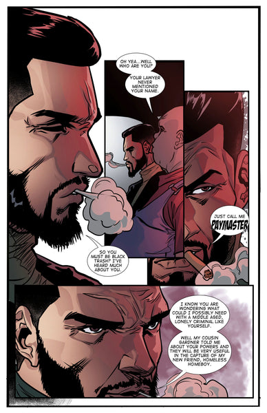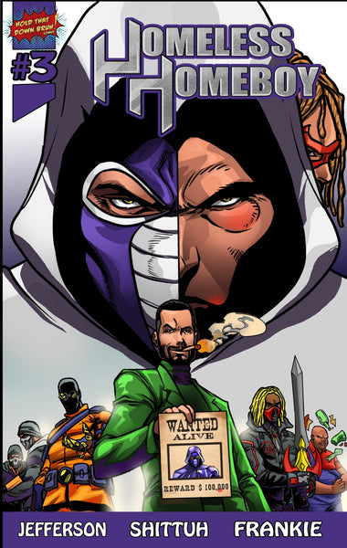 Get ready for the action-packed finale of the first chapter in the Homeless Homeboy series with Homeless Homeboy #3! Paymaster, determined to eliminate the hero who threatens his street empire, puts a staggering $100,000 bounty on the capture of Homeless Homeboy.