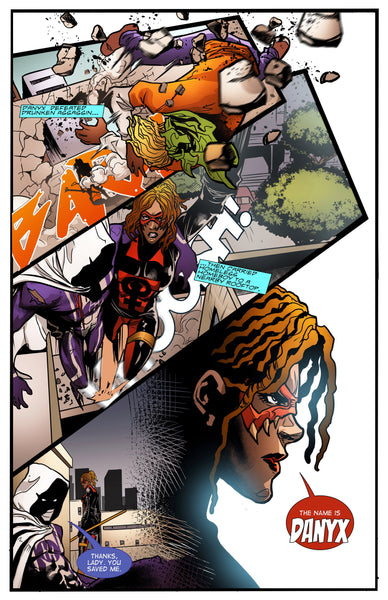 Joined by the resourceful Danyx, Homeless Homeboy takes on formidable adversaries in an epic showdown. Brace yourself as our hero faces off against the ruthless Black Trash, the cunning Drunken Assassin, and the deceitful Swindler. The stakes have never been higher as alliances are tested and battles are fought in this thrilling issue.